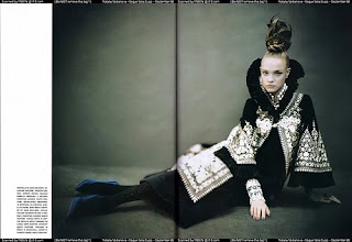These images from Vogue Italia 2006 with the somber backdrops and ornately gilded outfits look like they came right out of the renaissance.Gorgeous, painterly and timeless they would be appropriate in, say, the Ufizzi don't you think?.Source